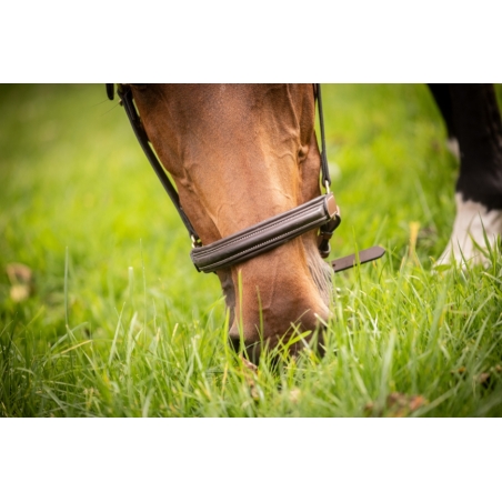 For a perfect fit, the crownpiece is adjustable on both sides with two large buckles, and the noseband with one buckle. The crownpiece is reinforced for added comfort on the horse’s head.