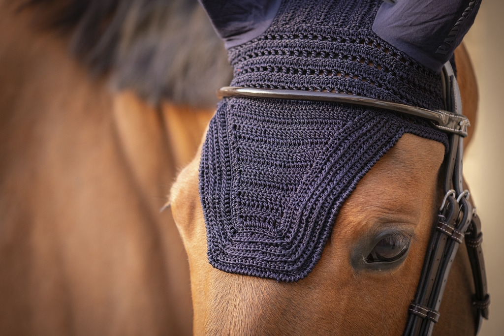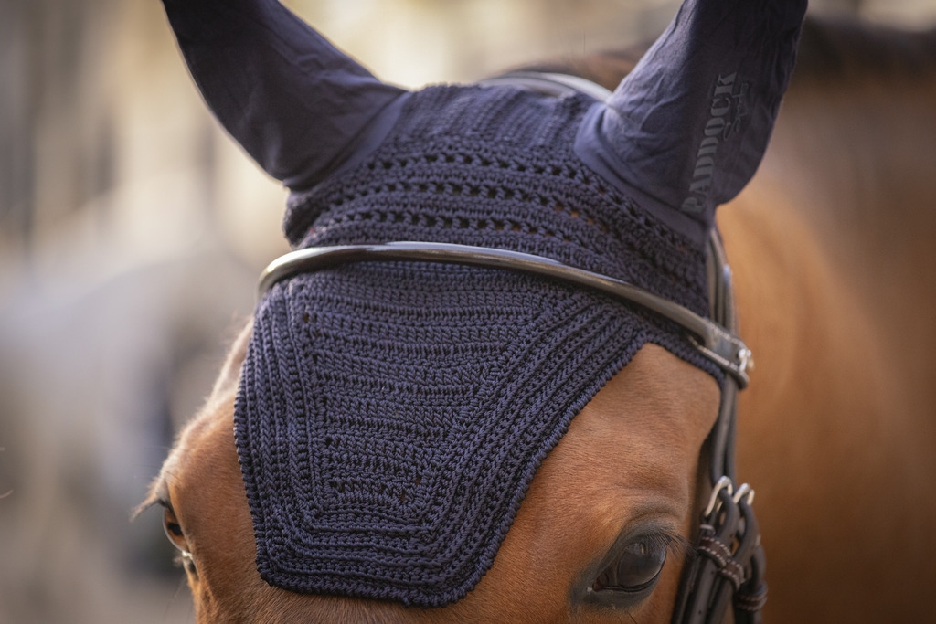 Bonnet pour chevaux Prems. Pour un total look, ce bonnet est parfaitement assorti aux tapis de selle PADDOCK Sports Prems. En maille crochetée avec des oreilles en tissu souple et confortable, il limite les bruits parasites et protège le cheval des insectes. Son style ajoute une touche esthétique au look du cheval.