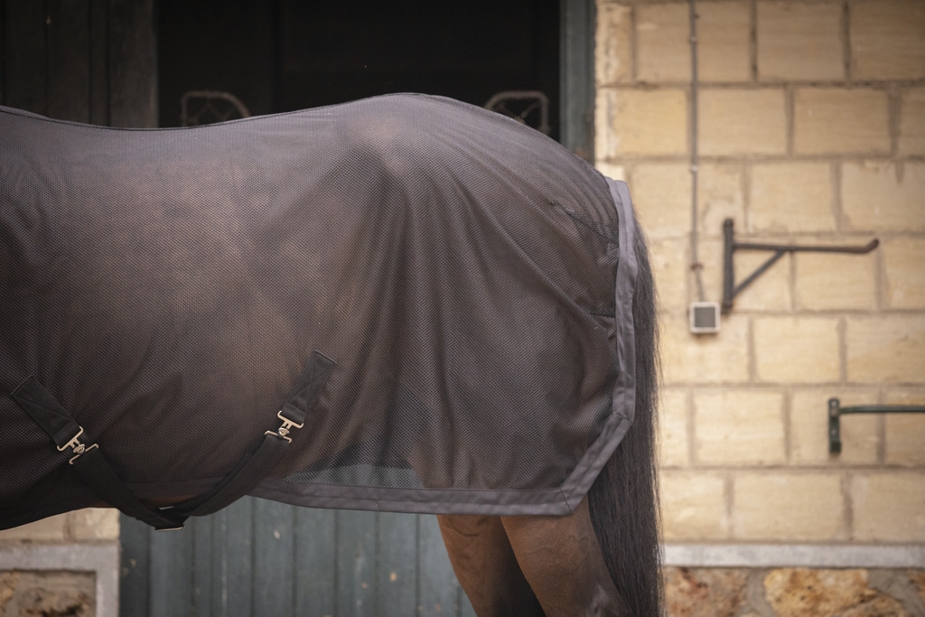 Chemise en mesh PADDOCK Sports est conçue avec un tissu aéré au maillage fin qui aide à évacuer la transpiration du cheval après le travail, favorisant ainsi sa récupération. Elle est dotée d'une boucle sur le poitrail, de deux sangles ventrales à croiser et d'un passage de queue. Côté look, la chemise Mesh est dotée d'un large galon noir à l'extérieur, d'une petite découpe sport à l'arrière et d'un insert en cuir estampillé PADDOCK Sports au niveau de l'épaule.