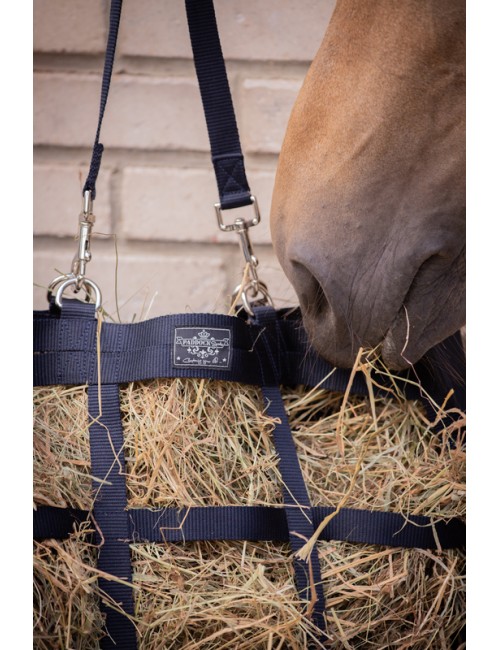 Indispensable en concours ou à l'écurie pour suspendre le foin dans le box, le sac à foin évite que le foin ne s’éparpille. Il se remplit rapidement par sa grande ouverture sur le haut et se fixe facilement par sa lanière amovible par mousquetons.