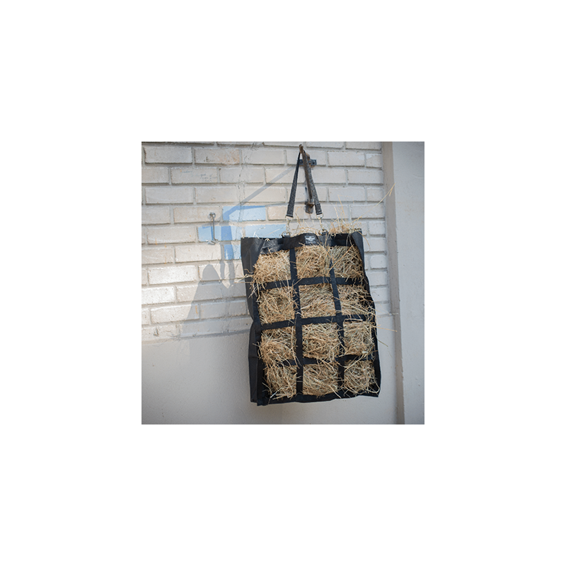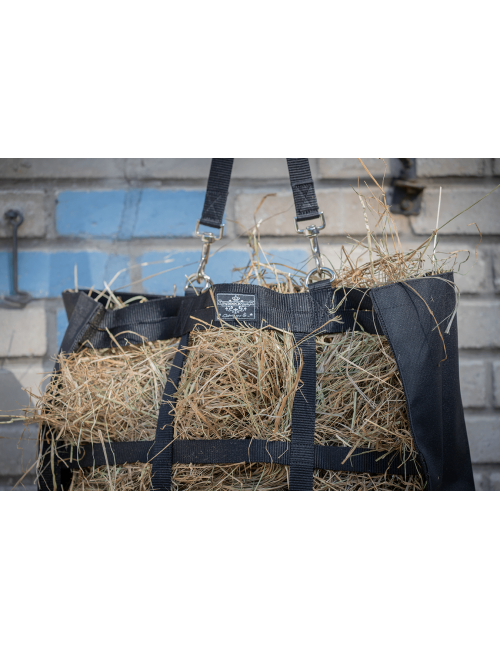 Indispensable en concours ou à l'écurie pour suspendre le foin dans le box, le sac à foin évite que le foin ne s’éparpille. Il se remplit rapidement par sa grande ouverture sur le haut et se fixe facilement par sa lanière amovible par mousquetons.