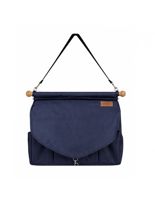 Le rabat du sac se ferme grâce à un mousqueton argenté et un insert en simili cuir avec des ornements Paddock est cousu en haut à gauche. Il s'accroche par une lanière amovible reliée à une jolie barre de bois qui renforce, elle aussi, sa stabilité et sa résistance. Il est d'une grande contenance
