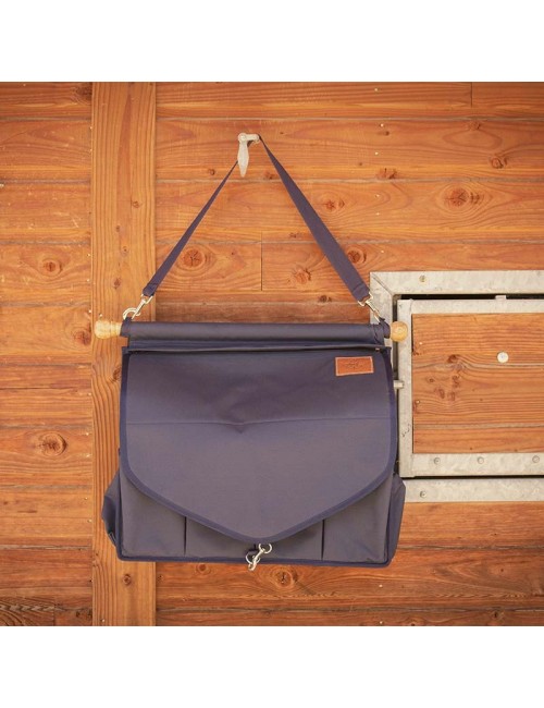Le sac de box Paddock Sports est composé d'un rabat amovible (très pratique pour le personnaliser avec une broderie et pour l'entretenir) et d'une poche principale divisée en trois et renforcée dans le fond pour le rendre bien résistant et stable.