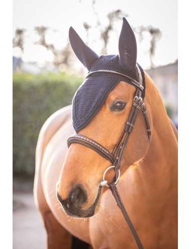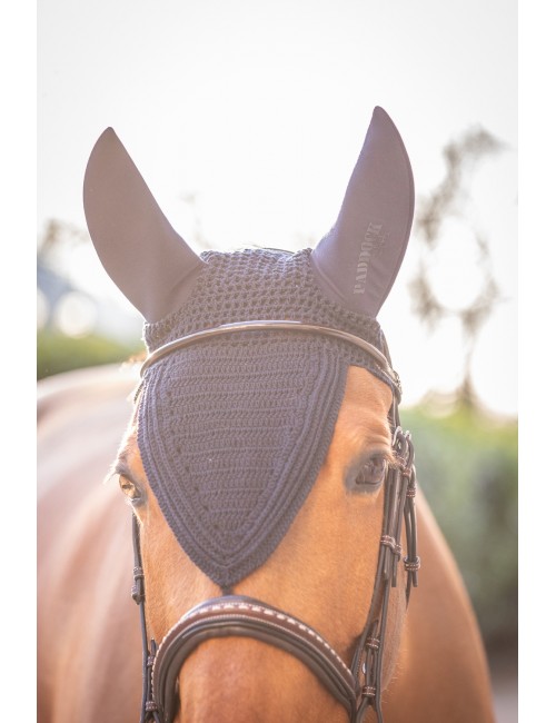 Sur l'oreille gauche, on trouve un marquage en gomme "PADDOCK Sports" chic et discret. Il possède une petite attache en bas du V pour le fixer facilement à la muserolle.