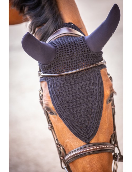 Le Bonnet soundless long pro coton PADDOCK Sports est réalisé dans un tissage assez épais et se pose parfaitement sur la tête du cheval. Les oreilles ont des renforts souples qui permettent d'isoler le cheval des insectes, bruits et intempéries et ainsi, de favoriser sa concentration.