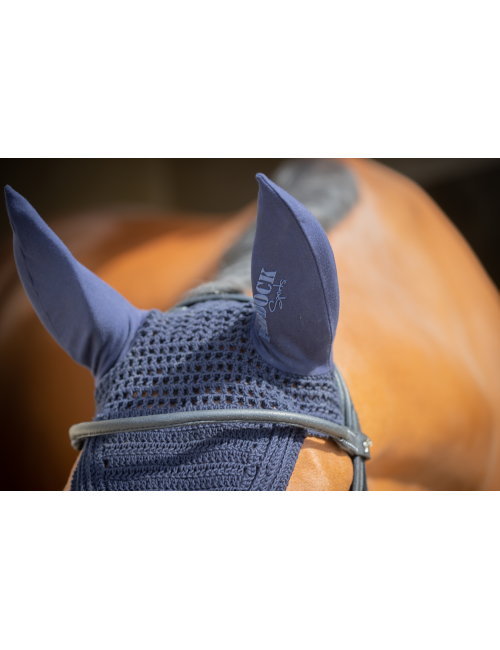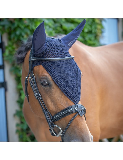 Décliné en version longue, ce bonnet en forme de V possède une petite attache de muserolle. Il est confectionné avec un tissage assez épais qui épouse parfaitement sur la tête du cheval. Ses oreilles sont stretch pour s'adapter parfaitement à toutes les morphologies. Le logo PADDOCK Sports est siliconé ton sur ton au niveau de l'oreille gauche.