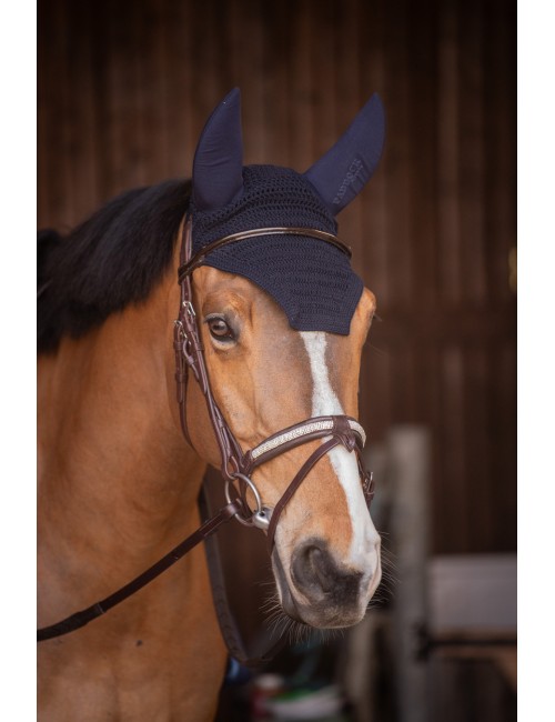 Idéal pour les chevaux sensibles au niveau des oreilles, ce bonnet est conçu avec des oreilles doublées pour protéger des bruits extérieurs et favoriser la concentration du cheval. L'épaisseur du tissu protège également des insectes et des intempéries.