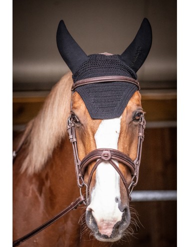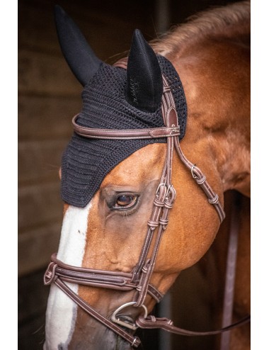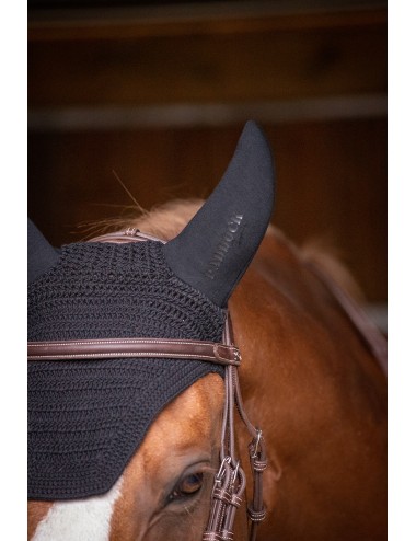 Idéal pour les chevaux sensibles au niveau des oreilles, ce bonnet est conçu avec des oreilles doublées pour protéger des bruits extérieurs et favoriser la concentration du cheval. L'épaisseur du tissu protège également des insectes et des intempéries.
