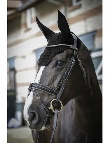 Original avec sa forme carrée sur le chanfrein, ce bonnet en tissage assez épais se pose parfaitement sur la tête du cheval. Ses oreilles en tissu stretch s’adaptent à toutes les morphologies. Marquage PADDOCK Sports sur l'oreille gauche.