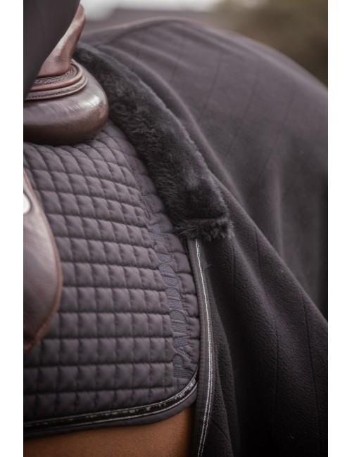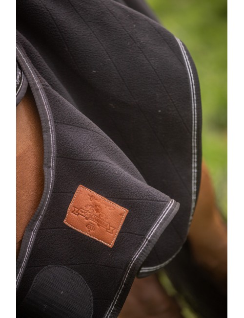 Le couvre-reins polaire Diagonal a un patch en cuir PADDOCK Sports à l'arrière gauche, comme une signature de la marque.