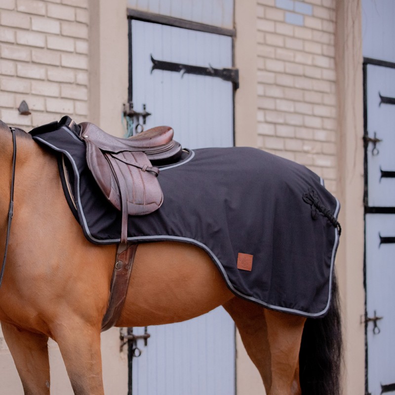Le couvre-reins PADDOCK Sports Classic Rain est confectionné dans une matière imperméable doublée d'une fine couche de polaire. Il s'accroche sur le devant de la selle grâce un large velcro. Sa fine épaisseur de polaire offre, par temps froid, une bonne source de chaleur. Son revêtement imperméable permet de garder votre cheval au sec en cas d'intempéries. Côté look, il est composé d'un galon gris bleuté et d'un brandebourg ton sur ton. Il est sobre mais très chic et peut s'utiliser au quotidien aux écuries comme en concours hippiques.