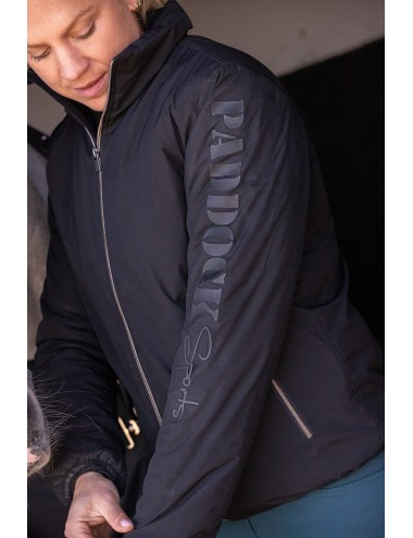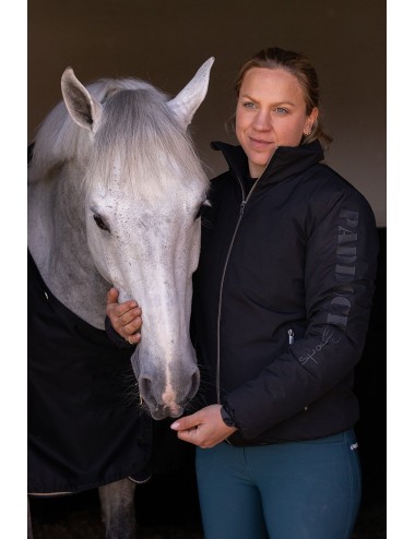 Parka mi-longue noire coupe-vent et doublée polaire marquée du logo Paddock en gomme sur le bras gauche.