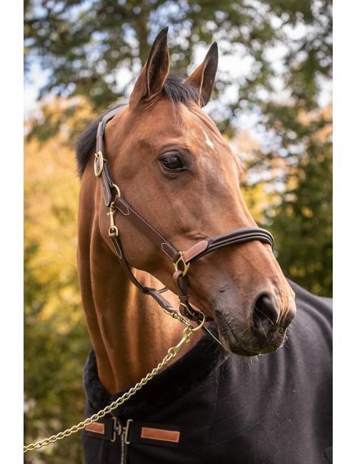 Le licol trois mousquetons Paddock est idéal à utiliser au quotidien, aux écuries comme en concours et se complète parfaitement avec la longe de présentation en cuir Paddock.