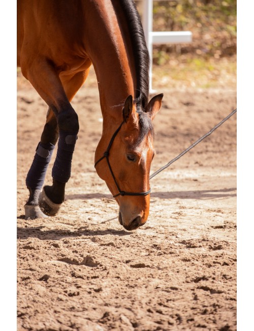 Le licol éthologique Paddock peut s'utiliser à pied pour travailler son cheval, notamment en longe.