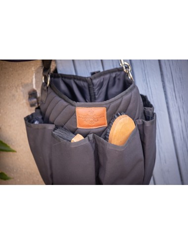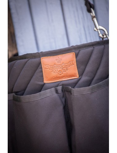 Sac de pansage groom Diagonal PADDOCK Sports composé d'une grande poche centrale et de huit poches tout autour. Idéal pour ranger tout le matériel de pansage et vos produits de soin. Très pratique avec sa lanière amovible par mousqueton, il s'attache partout en concours comme aux écuries. Fabriqué dans une bâche très résistante, surpiquée en diagonal sur la poche centrale, il est facile d'entretien. Le logo PADDOCK Sports est embossé sur un patch en cuir cousu.