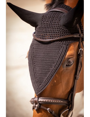 A high end fly veil, thick woven to be perfectly placed on the horse's head. Stretch ear to fit any ear size.