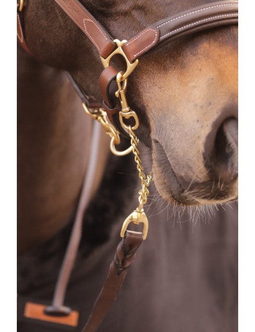 Le Licol Paddock Sports en cuir bicolore havane/noisette est doté de trois mousquetons
